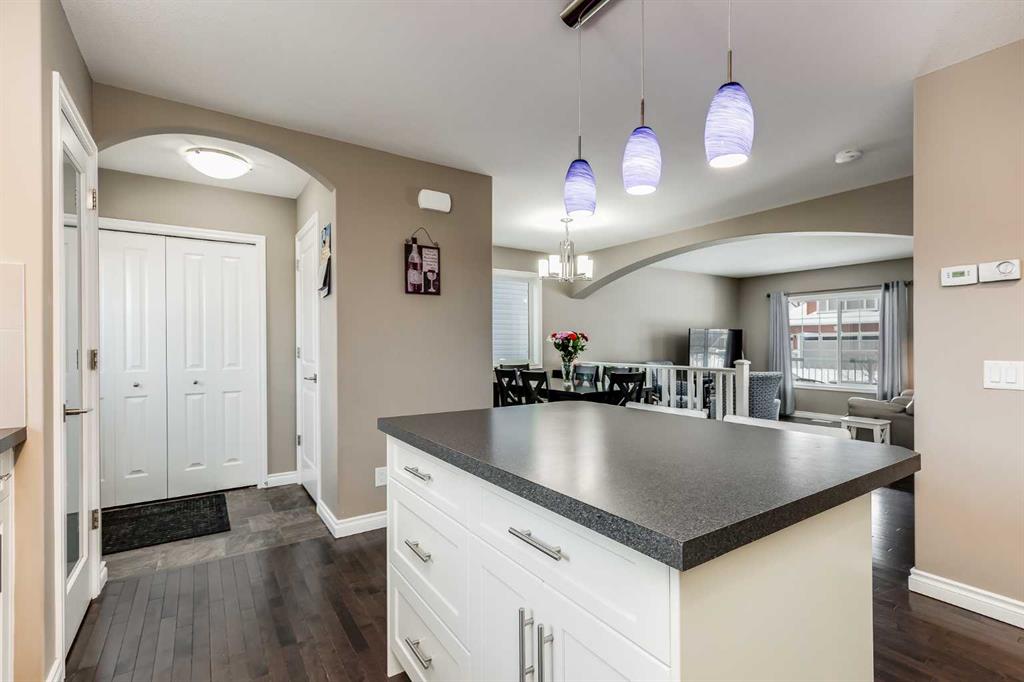 Step inside to discover an inviting open-concept floor plan adorned with beautiful hardwood floors throughout the main level, bathing the space in an abundance of natural light. The main floor features a generously sized living room, a dedicated dining area, and a timeless white kitchen equipped with ample workspace, a central island, and plenty of storage for your culinary needs.