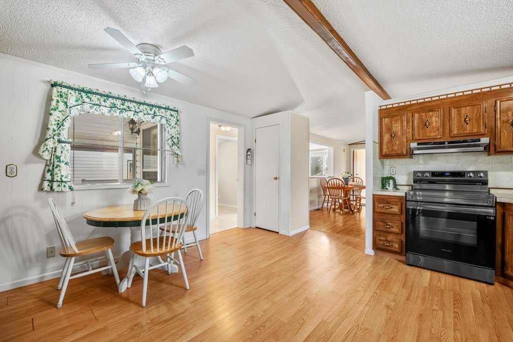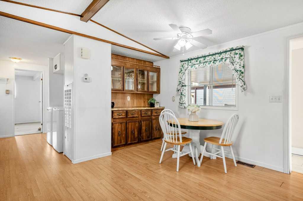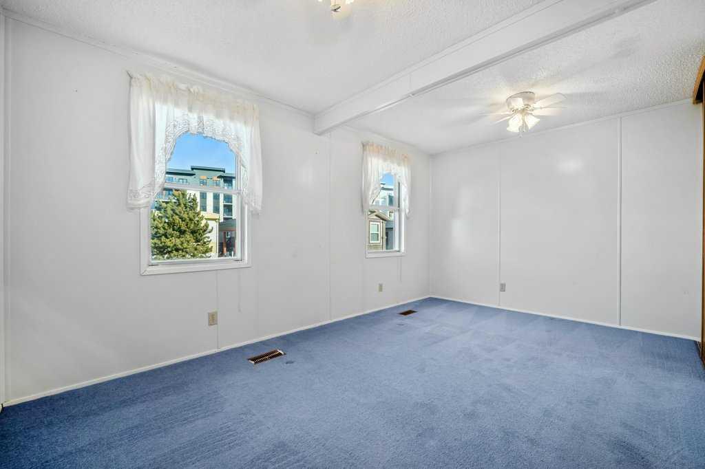 Welcome to this beautifully maintained and thoughtfully designed mobile home located in the highly desirable Westgrove Mobile Home Park, offering a true sense of pride of ownership in one of Northwest Calgary’s most established communities. This spacious home features 2 bedrooms and 2 bathrooms, including a private ensuite with a walk-in shower and patio access to the South facing back deck. An exceptionally functional layout with two large living rooms and two separate dining areas—perfect for both everyday living and entertaining. A dedicated storage/wine room/den adds even more versatility. The large addition expands the living space to make the total open living space over 1400 square feet and includes brand-new temperature-regulating baseboard heaters and a cozy electric fireplace with adjustable temperature control to set your comfort level without worry creating a comfortable retreat year-round. The home has been meticulously cared for and shows beautifully. Step outside to enjoy the sun-filled south-facing backyard, accessible from two separate doors, featuring a solid wood deck and a lower stone patio—ideal for relaxing, entertaining, or enjoying warm summer evenings. The large storage shed includes an additional refrigerator, perfect for beverages and entertaining. Parking is effortless with a covered carport and additional driveway space for two more vehicles. Significant recent upgrades include a brand-new roof and all new plumbing beneath the home, complete with a self-regulating heat tape system and dedicated system, offering peace of mind and protection from freezing—no winter worries here. Located just two doors from the clubhouse, residents enjoy convenient access to the pool, games room, and community amenities, enhancing the lifestyle appeal of this welcoming neighbourhood.